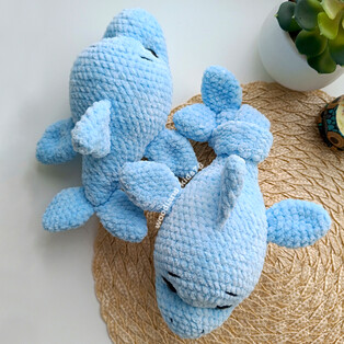 Бесплатный мастер-класс от Ксении Костюк @woodland_kids76 по вязанию плюшевого дельфинчика по имени Гоша. Размер вязаной крючком игрушки зависит от используемых материалов и плотности вязки. Для изготовления такого дельфина автор использовала плюшевую пряжу LaVita yarn Velur и крючок 3,5 мм. Также вам понадобятся глазки на безопасном креплении 14 мм. Голова и тело игрушки вяжутся одной деталью, остальные части пришиваются. Описание схемы составлено подробно, содержит фотографии и пояснения от автора, которые помогут вам в процессе создания милого дельфинчика.
