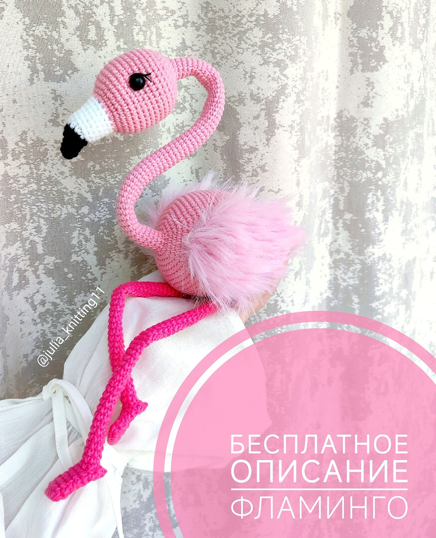 Фото вязаной игрушки Фламинго амигуруми крючком 875x1080
