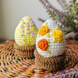 Бесплатный мастер-класс от Дарьи Неустроевой по вязанию пасхального яйца крючком. Размер вязаной игрушки зависит от используемых материалов и плотности вязания. Для изготовления таких маленьких яичек автор использовал пряжу YarnArt Jeans и крючок 2 мм. Игрушка вяжется одной деталью, пришиваемые части отсутствуют. Из описания схемы вы также узнаете как связать корзиночку для украшения яйца к Пасхе.